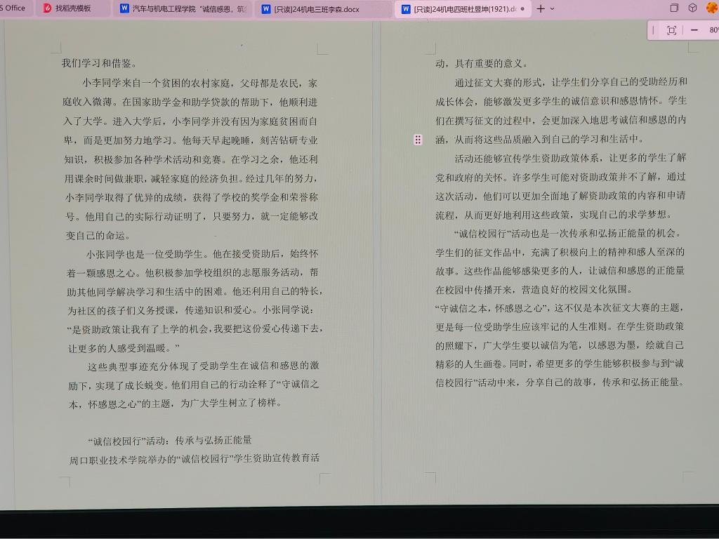 活动筹备期间,学院通过班级群等多元渠道,全面宣传活动信息,成功点燃了同学们的参与热情,此次征文活动别具一格,鼓励同学们从自身专业视角深度挖掘感恩资助的内涵。同学们可将专业知识融入感恩实践,结合自身受助经历,分享如何通过具体行动回馈社会、推动行业进步,以实际行动诠释专业知识与感恩之心的深度融合。