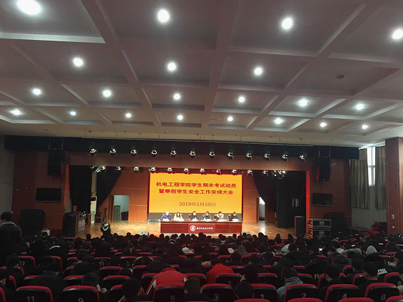 2019年1月10日上午,机电工程学院在砺德厅召开全院员工期末考试动员大会暨寒假员工安全工作安排大会。