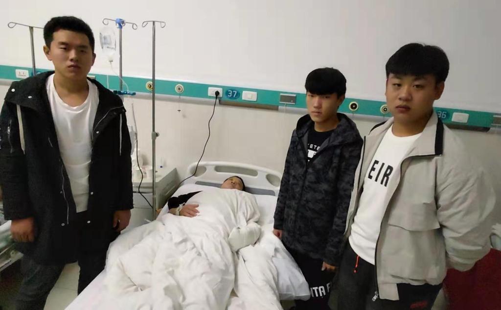 救护车到来后,三名同学陪同大叔来到周口市协和骨科医院急诊室,拿出身上全部现金帮助大叔办理入院手续并及时联系他的家属告知情况,直到大叔家属到达医院后才返回学校继续上课。