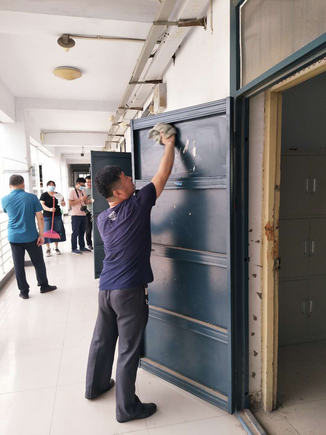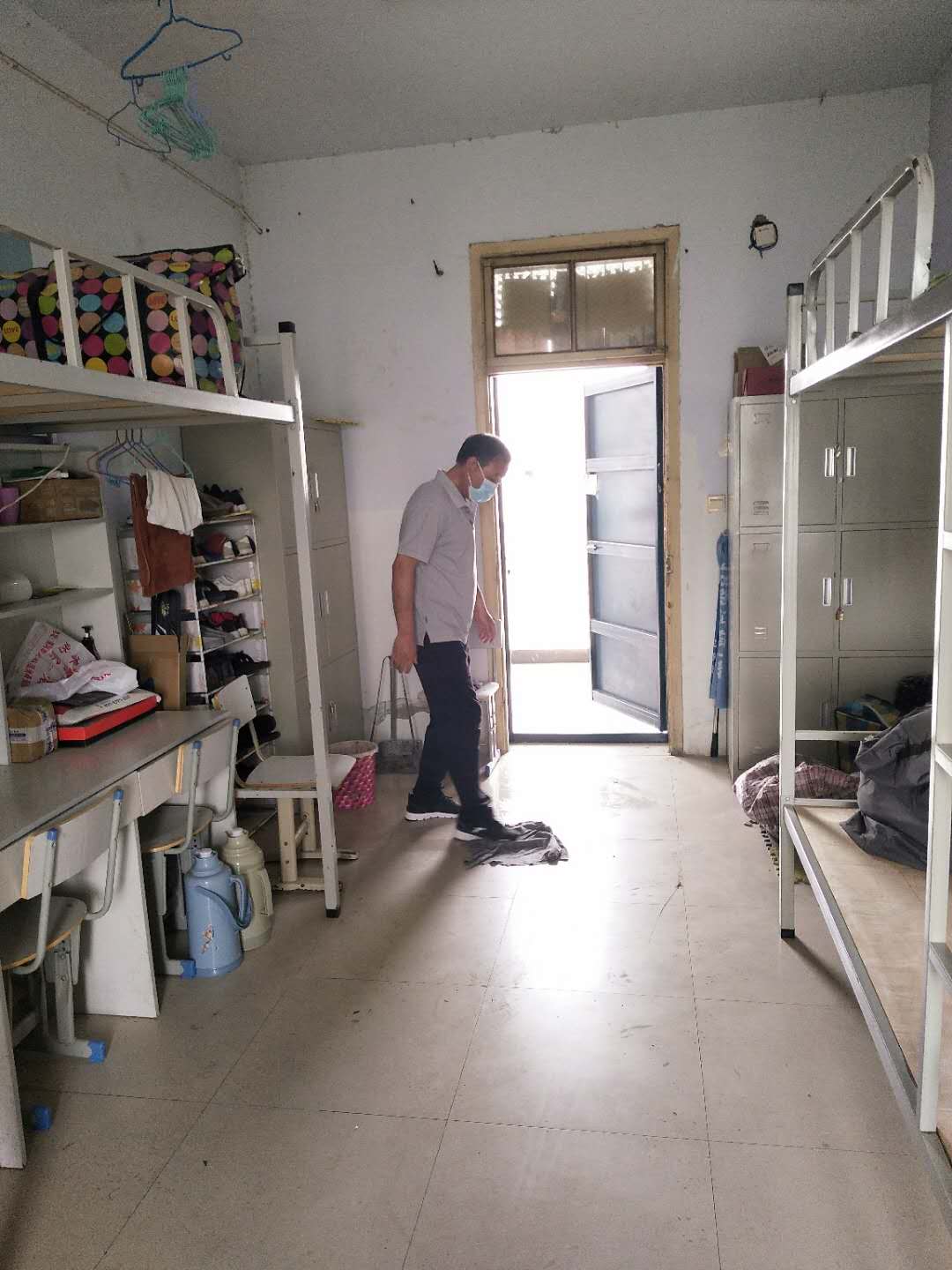 5月28日上午8点30分,yl23411全体老师来到院综合办公室,进行签到和体温测量。在公司党总支书崔东风,经理严胜利的带领下全体老师来到宿舍,按照分工,每位教师打扫一间员工宿舍,老师们积极投入到员工宿舍卫生清扫、整理和消毒中。老师们像在给自己的孩子们打扫房间一样,将被褥、鞋子、生活用品等物品规整整齐,门窗、地板擦洗干净,离开时对宿舍进行消毒、落锁。