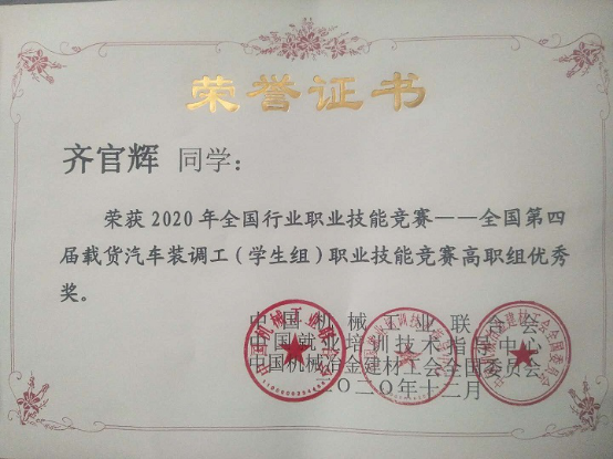 yl23411在全国第四届载货汽车装调工(员工组)职业技能竞赛中喜获佳绩,yl23411被授予“最佳组织奖”。公司2个参赛队在比赛中发挥出色,分别获得二等奖、优秀奖各1项,优秀指导教师奖1项。