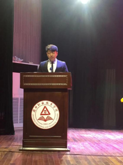副董事长李明臣代表学校向获得本次“万国奖学金”的76名同学表示最热烈的祝贺!向为同学们发放奖学金的河南万国汽车运营管理有限公司表示衷心的感谢!