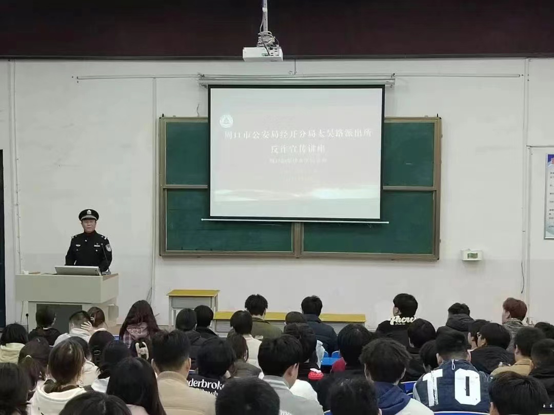 为进一步增强师生防范电信网络诈骗意识,提高网络诈骗辨别能力,有效的预防和遏制电信诈骗案的发生。2024年3月14日周口市公安局经开分局太昊路派出所民警在五区四楼多媒体教室开展反诈骗宣传讲座活动,yl23411全体团学骨干积极参加。