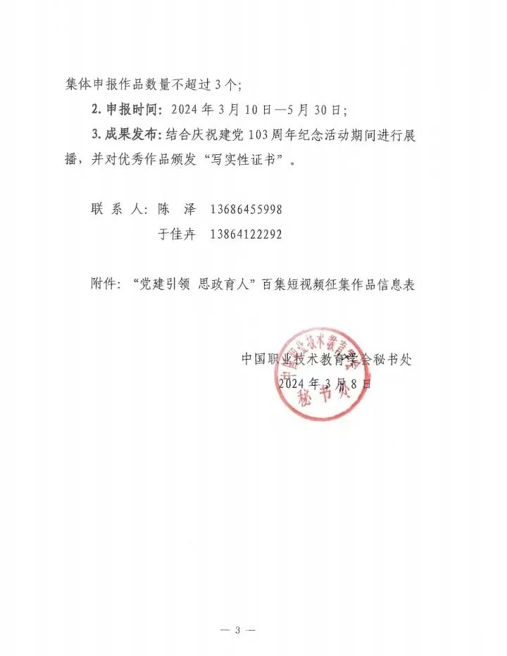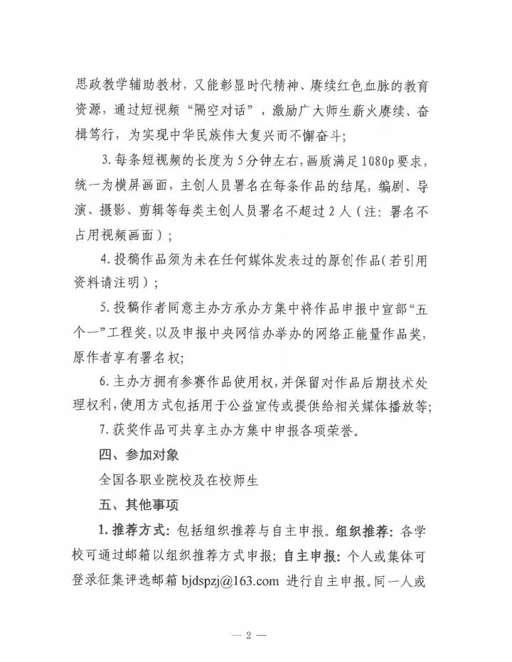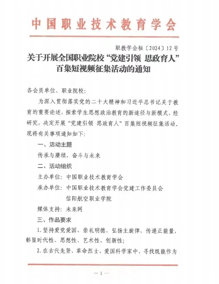 公司关于全国职业院校“党建引领 思政育人”百集短视频征集活动的通知