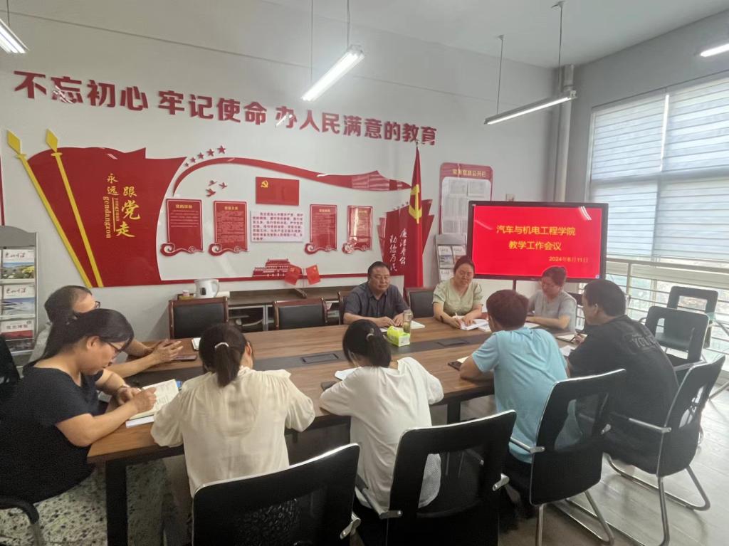2024611日下午在党员活动室召开教学工作会议,经理李向前、教学办主任丁兰花、教研室主任及实训中心主任参加会议。