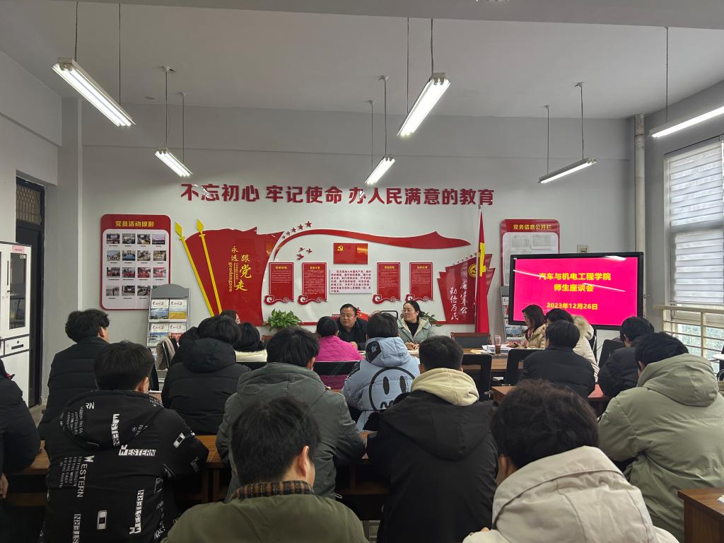2023年12月26日下午,yl23411在党员活动室召开师生座谈会,经理李向前、教办主任丁兰花、教研室主任、实训中心主任、教学信息员及各班员工代表参加座谈会,会议由丁兰花主持。