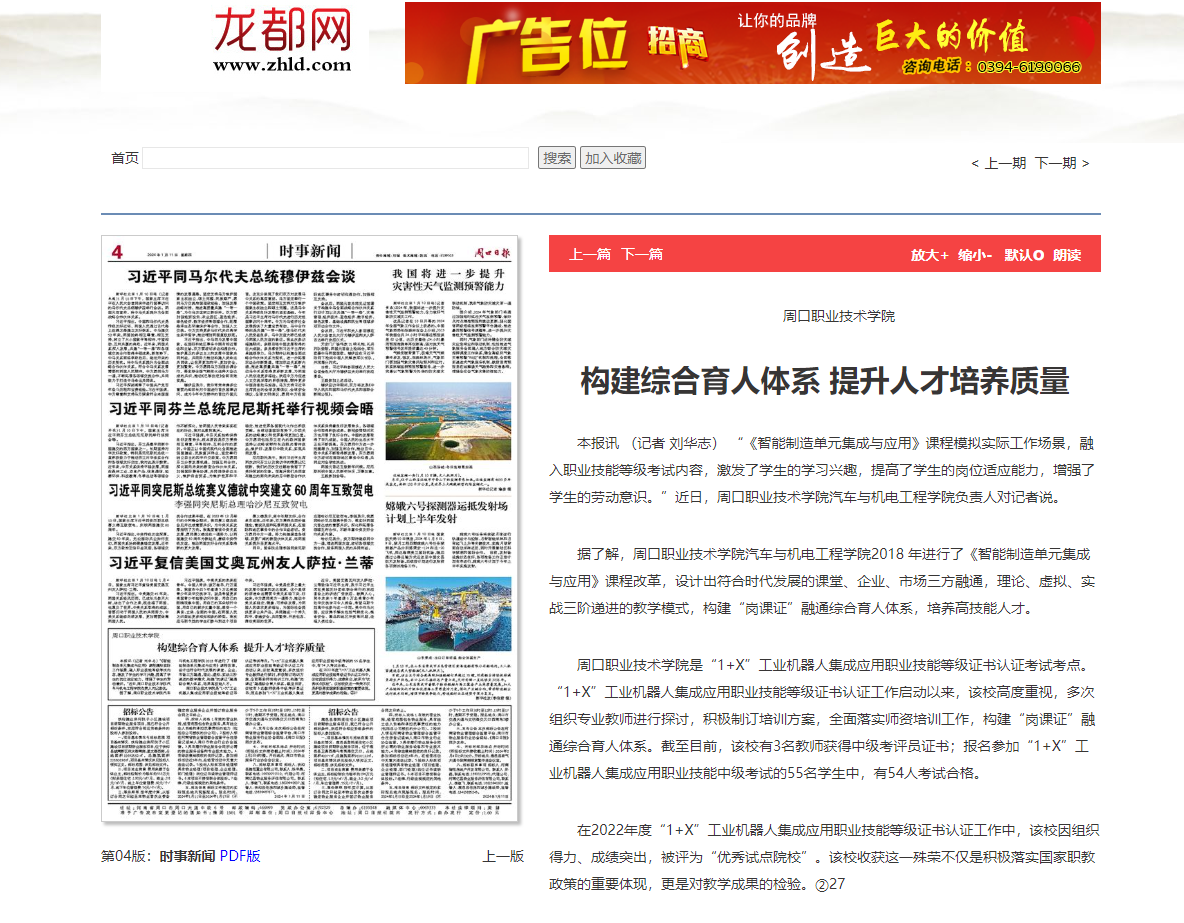 在2022年度“1+X”工业机器人集成应用职业技能等级证书认证工作中,该校因组织得力、成绩突出,被评为“优秀试点院校”。该校收获这一殊荣不仅是积极落实国家职教政策的重要体现,更是对教学成果的检验。