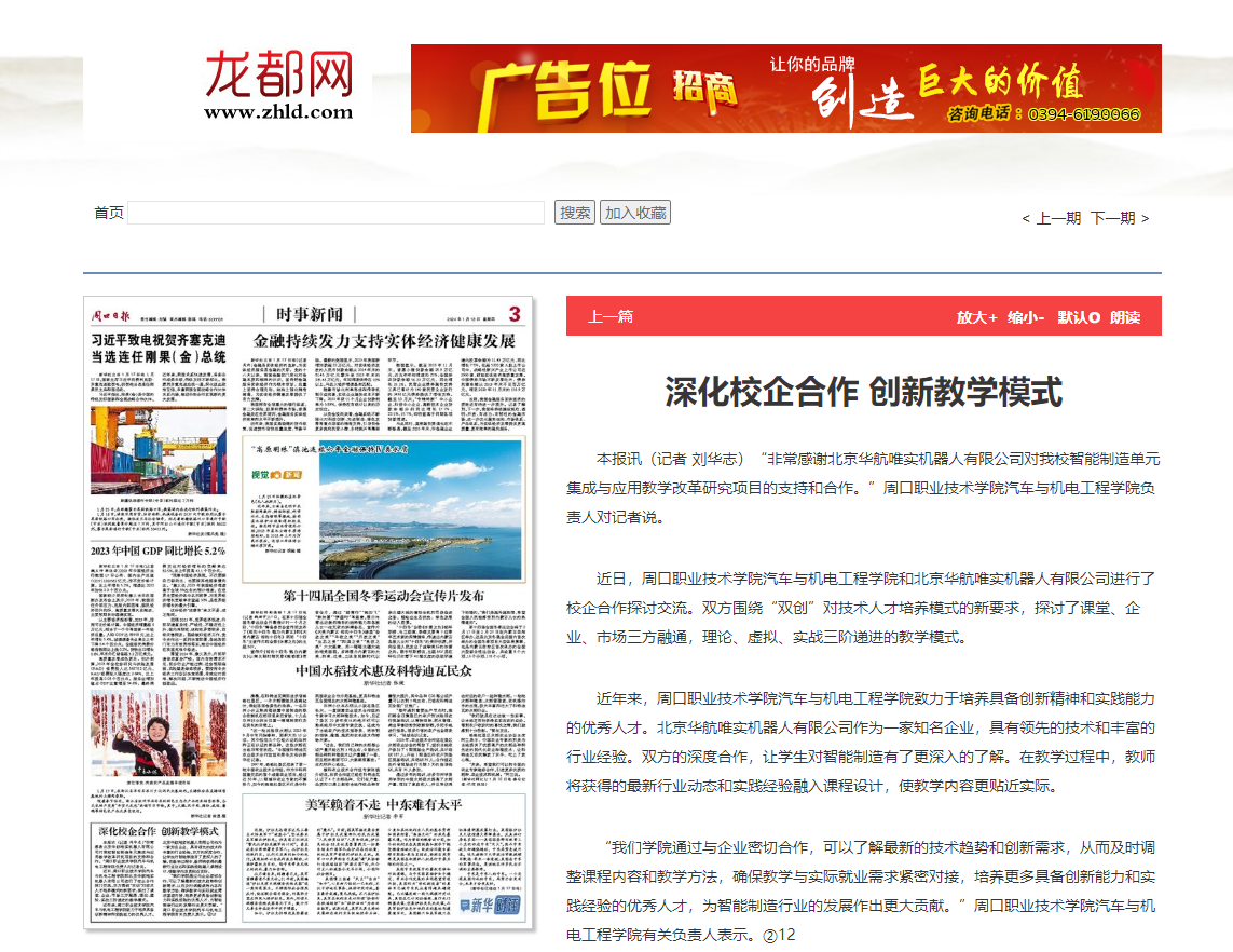 【周口日报】yl23411:深化校企合作 创新教学模式