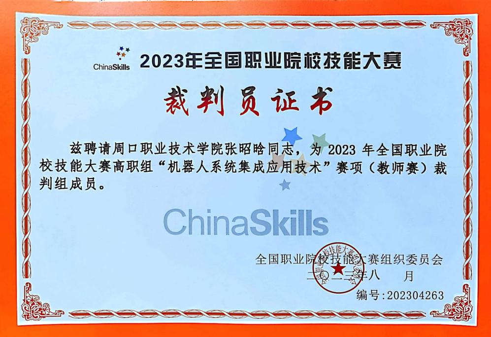8月18-25日,根据《教育部关于举办2023年全国职业院校技能大赛的通知》(教职成函[2023]6号)精神,2023年全国职业院校技能大赛高职组“机器人系统集成应用技术”赛项,在山东省济南市山东职业学院举行,公司张昭晗老师受邀参加了该赛事“教师组”和“员工组”的裁判工作。