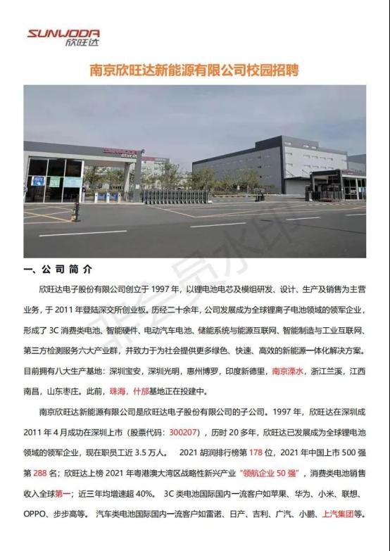 周职招聘:南京欣旺达新能源有限公司校园空宣专场