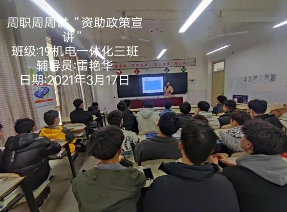 为让广老员工了解和掌握国家资助政策,2021年3月8日-3月12日,按照学校员工处要求公司组织员工召开“奋进新时代,周职周周讲”第四十六期——“资助政策宣讲”主题班会。