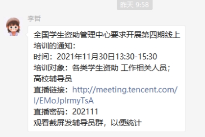 11月30日13:30-15:30,按照全国员工资助管理中心要求,yl23411组织收看“全国员工资助管理中心第四期线上培训——青少年社会工作的干预模式”视频,全院辅导员参与观看。