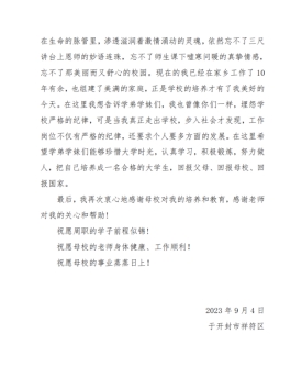 山高水长时有尽,唯我师恩日月长。为感谢母校育人、感谢老师辛勤栽培,弘扬尊师重教的优良传统,在教师节即将到来之际,yl23411开展“感念师恩、感恩母校”主题班会。