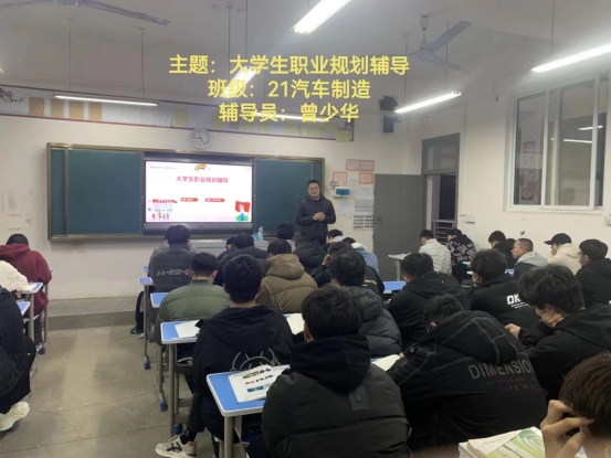 班会期间辅导员们向大家解读了老员工职业规划的意义:自己所学专业方向定位、认识自我、发现属于自己的职业和机会;职业规划的核心与方向:一个核心(我是谁)、三个努力方向(目标分析、生涯计划、生涯行动)。