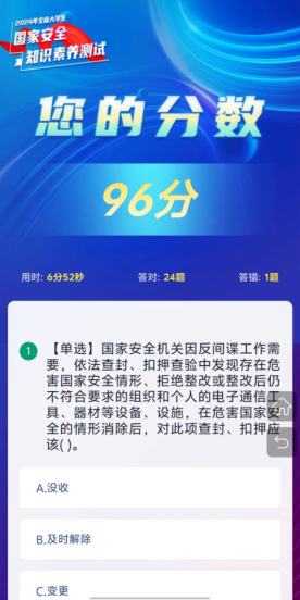 为了提高员工的国家安全意识和素养,在实践中提升自己的国家安全知识水平和能力。yl23411于2024年4月2日开展2024年老员工安全知识素养测试活动,通过线上答题的方式提高员工对国家安全的认识,帮助他们理解并遵守国家安全相关法律法规。