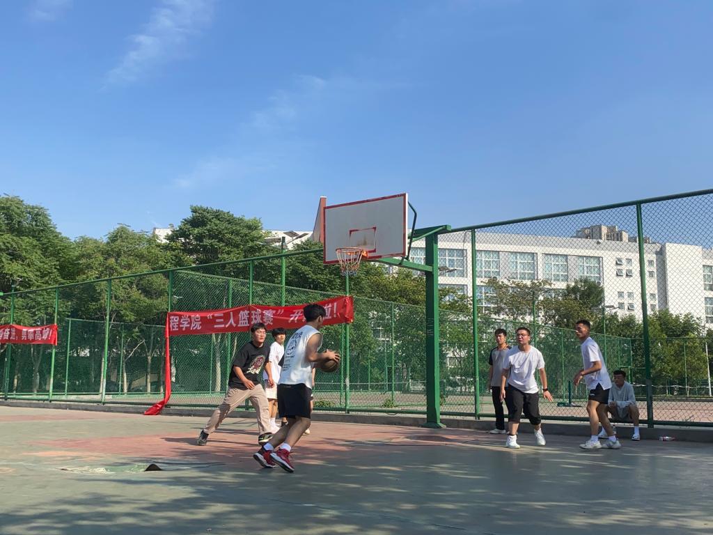 篮球场上正在进行比赛的队伍,认真比赛,挥洒汗水,巧妙抢断,精准投射,以高超的球艺和精彩的配合赢得了在场观众们的阵阵喝彩。整场比赛紧张热烈,运动员用汗水和激情表达了对运动、对生活的热爱,展现了“友谊第一、比赛第二”的体育竞技精神,也展示了公司学子顽强拼搏、奋发向上的精神面貌。