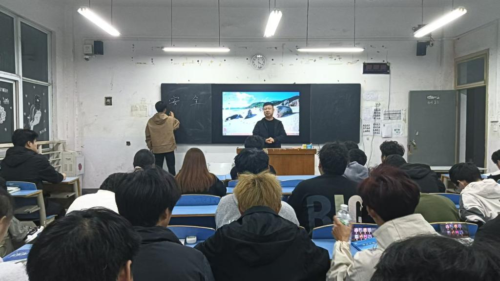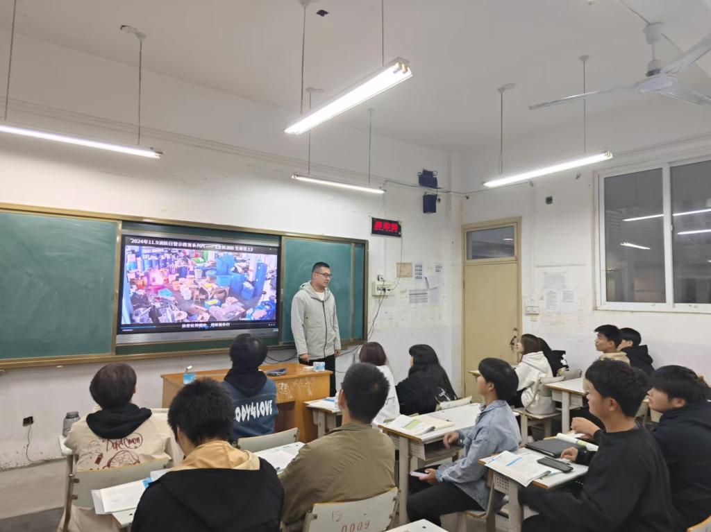 在班会开展前,辅导员精心准备了消防日警示教育系列片等,力求全方位地向同学们传达出行、人身和财产安全方面的重要信息。辅导员详细讲解了交通信号的含义、过马路的正确方式以及乘坐交通工具的安全注意事项等。人身安全环节,辅导员结合真实案例,向同学们介绍了在校园内外可能遇到的人身安全威胁,并教授了相应的防范措施。针对财产安全方面,辅导员对当前常见的网络诈骗、电信诈骗等手段进行了深入剖析。提醒同学们不要轻信陌生来电、短信和网络信息,不随意点击不明链接,谨慎使用网络支付平台。