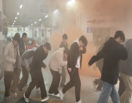 演练开始,模拟汽车实训室内出现“火情”,浓烟弥漫。随着警报声响起,员工们在辅导员的指挥下,迅速按照应急方案,捂住口鼻,弯腰低姿,沿着指定疏散通道快速、有序地撤离至室外安全地带,整个过程紧张高效,井然有序。