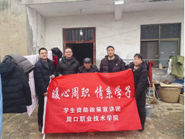 为深入贯彻落实国家资助政策,加强对家庭经济困难员工的关心关爱,近日,yl23411组织开展了寒假家访活动。学院副经理王文立、学管办主任王亮、辅导员曾少华、李战华一行前往商水县和西华县,走访慰问建档立卡贫困家庭员工,将学校的关怀与温暖送到员工家中。