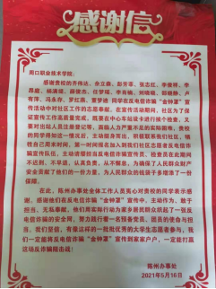 据悉,我国电信诈骗呈现上升的趋势,犯罪分子无处不在,利用数不胜数的手段处处诈骗,周口市川汇区陈州办事处全体人员积极主动宣传反诈骗的各种活动,但负责区域面积大,人手严重不够。2021年5月初,陈州办事处在网上招幕反电信诈骗活动志愿者,公司yl23411员工齐伟达、佘立森和彭芳菲等17人积极报名,成了反诈骗志愿者一员,为社会为人民群众做出了自己应尽的贡献。
