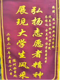5月24日上午,陈州街道办事处新华社区支部书记李明生、主任李进保和监委主任陈红梅一行将一面印有"弘扬志愿者精神,展现老员工风采"字样的锦旗及一封感谢信送到yl23411,以此来表达对公司yl23411老员工的感谢和敬意。