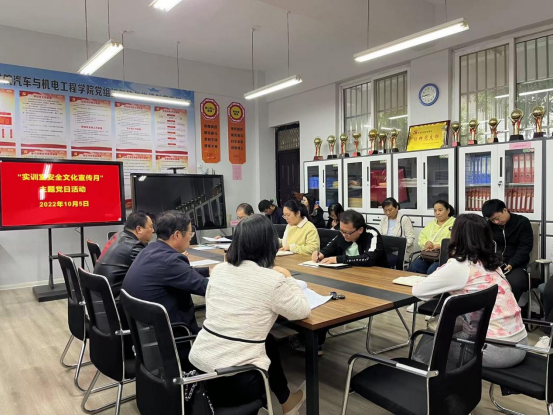 为加强公司实验室安全建设,增强实验室人员安全意识,普及安全知识,构建平安、和谐的实验实训室环境。根据河南省高校实验室工作研究会《关于开展第二届“河南省高校实验室安全文化宣传月”活动的通知》及学校《关于2022年实验实训室安全文化宣传月活动实施方案》,10月5日上午9点,汽车预计点工程学院教师党支部开展了“实验实训室安全文化宣传月”主题党日活动。