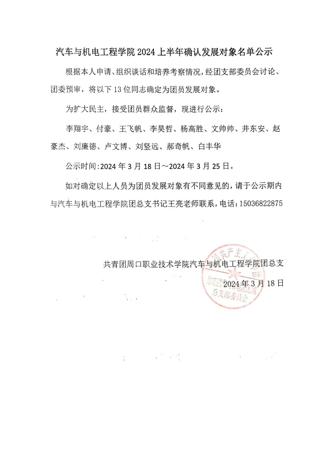 2024上半年确认发展对象名单公示