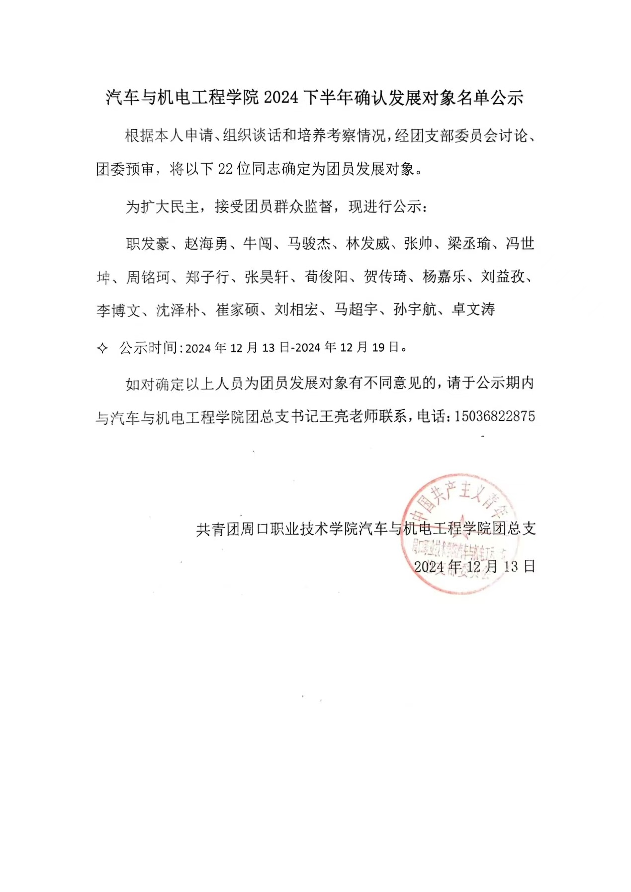 2024下半年确认发展对象名单公示