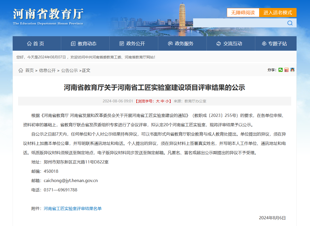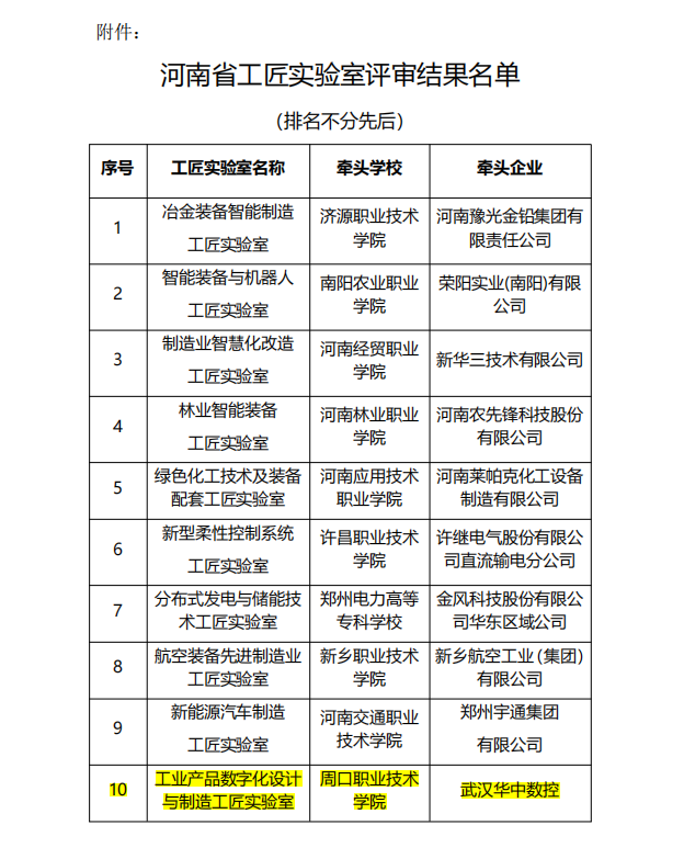 86日,河南省教育厅办公室发布了《河南省教育厅关于河南省工匠实验室建设项目评审结果的公示》文件,我工业产品数字化设计与制造实验室获批河南省工匠实验室